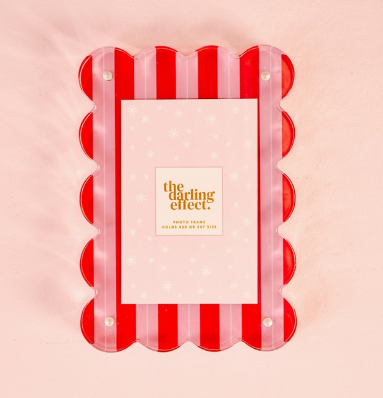 Add some personality to your space with our Scalloped Acrylic Picture Frames! With a modern design and playful scalloped edge, these frames are the perfect way to display your favorite memories. The magnetized panels make it super easy to update your photos, keeping things fresh and stylish.