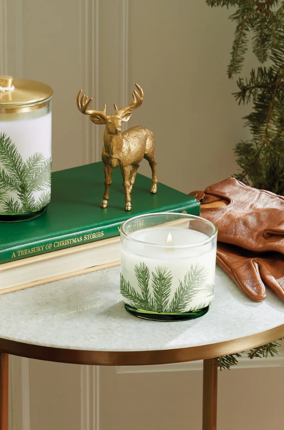 Fill your surroundings with the mountain's fresh and glowing fragrance of Frasier Fir. This Frasier Fir Small Pine Needle Luminary Candle is embellished with a pine needle design that celebrates the iconic fragrance. The embellished glass holder is a 7.5 oz. poured candle that will provide up to 45 hours of burn time. Thanks to a non-metal wick and pure paraffin wax, all you'll detect is the fresh and relaxing scents of Siberian fir, cedar wood, and sandalwood for a fragrance that conjures joyful memories and holiday traditions.