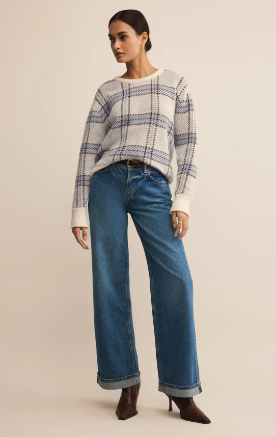 This plaid crew sweater strikes the perfect balance of cozy and refined. Crafted in an airy knit from light and lofty yarns, it delivers warmth without weight, the kind of comfort you’ll want on repeat.