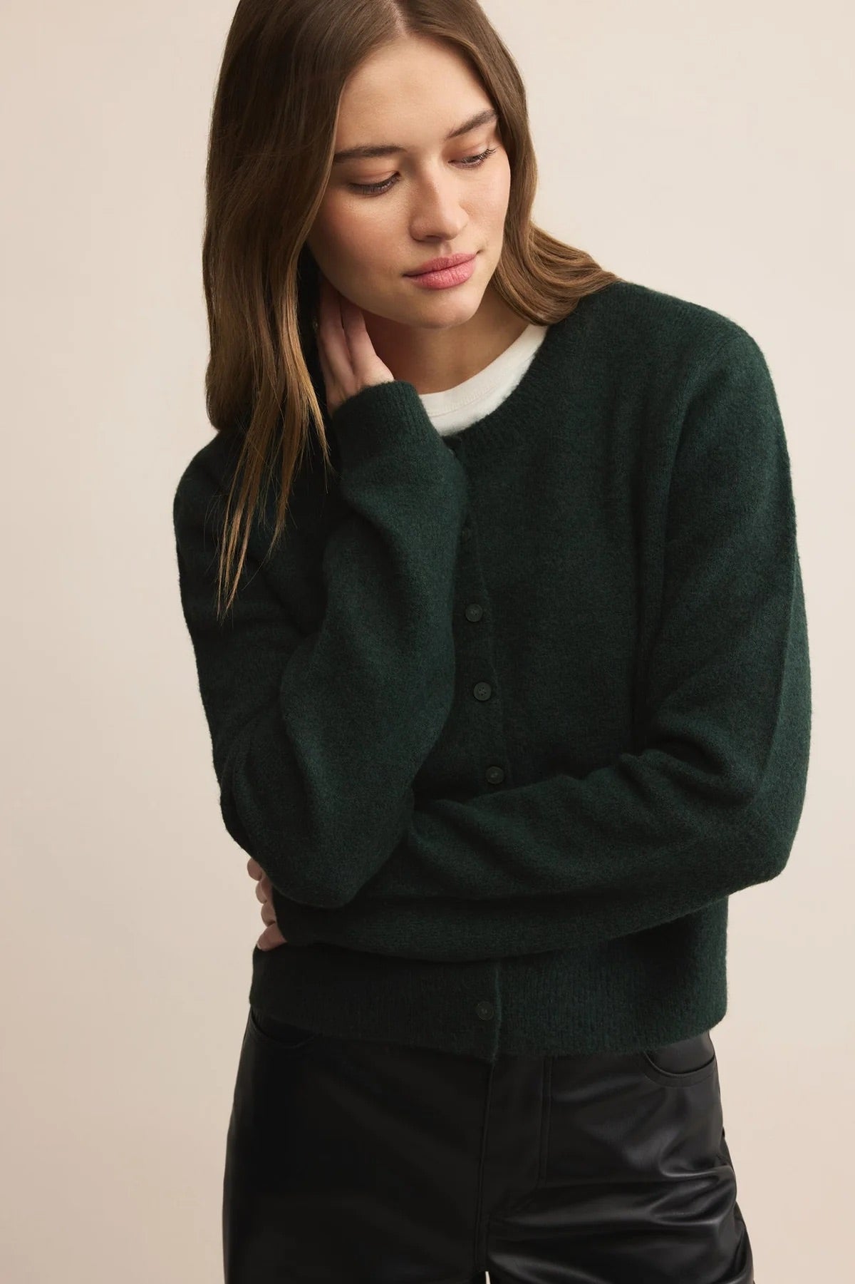This relaxed crewneck cardigan is made from cozy sweater yarns with an easy button-up front that’s perfect for layering. Whether tossed over a tank or worn solo, it’s the ideal go-to for cozy, casual days.